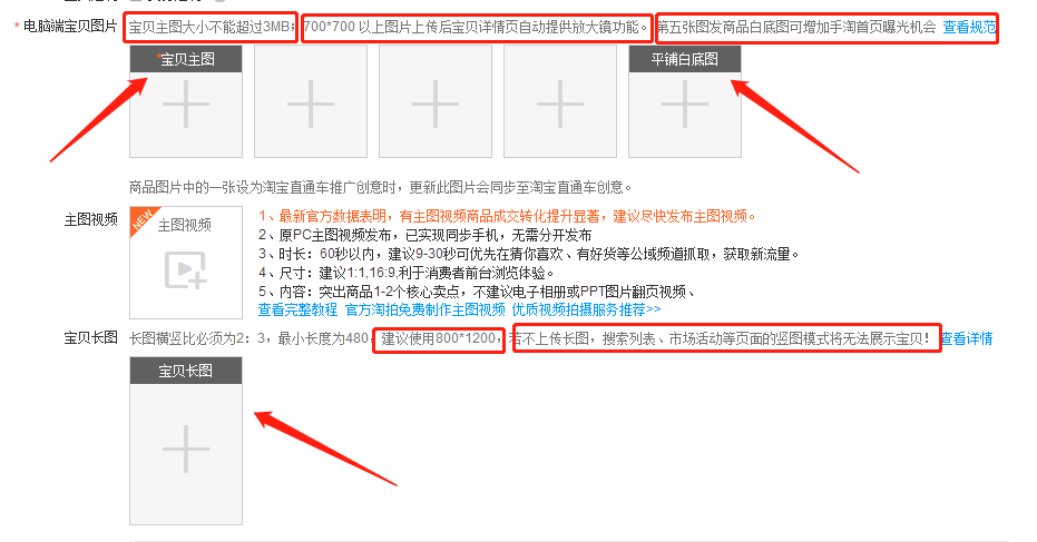 在发布宝贝时,通常需要上传5张图片(有的类目有第6张长图)这几张图片就是我们的宝贝主图,主图必须是正方形的图,因为正方形能突出我们的产品,尺寸大小一般为800*800,淘宝没有限定这个尺寸,只是大于700*700的图片可以在宝贝详情页提供图片放大功能。那为何做800*800呢,就是因为我们的白底图限定了尺寸800*800的,所以我们其他主图也做相应的尺寸。